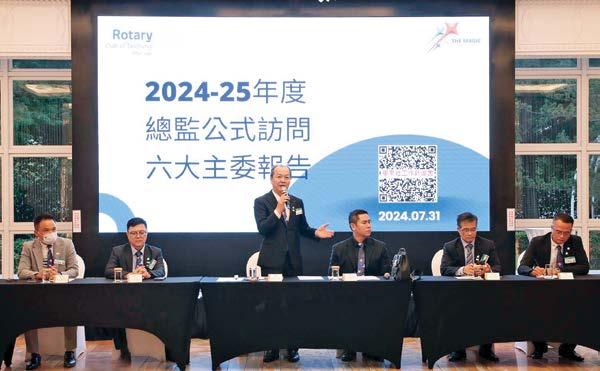 扶輪的原點就是輪流服 務,2024-25年度前總監協會 會長由3461地區前總監John 擔任,PDG John為台中中區 扶輪社社友,2001-02年度 扶 輪主題「服務人類是我們的事 業 」。PDG John會長致詞歡迎 PRIP Gary、RI理事Director、