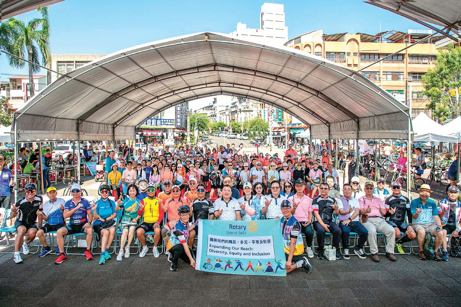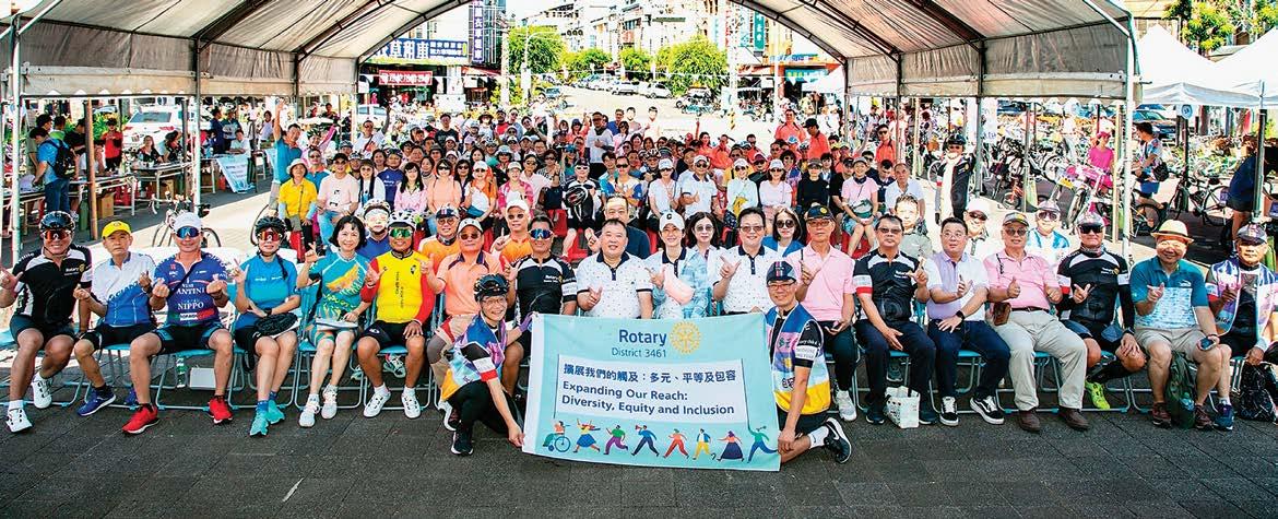 根除小兒麻痺症與DEI的推廣 是國際扶輪大力推廣的兩大方案, 3461地區舉辦的「神騎東豐鐵馬道 自行車首騎活動」,將這兩大方案神 奇的結合,潛移默化的宣導。