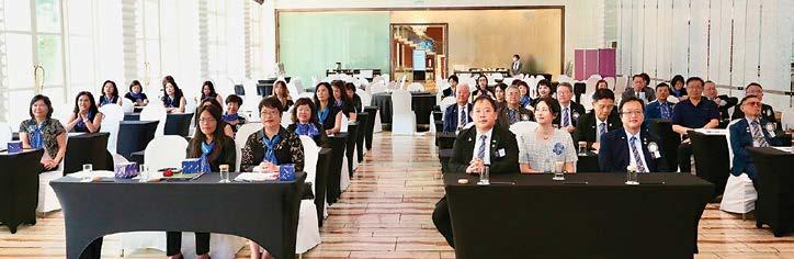 在社務行政會議上,行政管理委員會主委 Hao首先報告,每次例會出席委員確實掌握社 友出席狀況,並且主動關心未出席的社友,也將 例會線上直播,鼓勵大家踴躍參與。每月第一周 聯誼主委會舉辦慶生會,家庭懇談則以上下半年 聯合舉辦的方式,以達成全體社友百分百帶寶