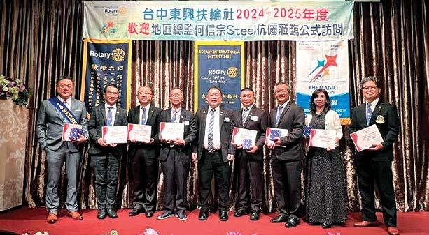Steel總監十分肯定台中港東南社年度工作 計畫,在致詞中也勉勵各位扶輪社友要支持社長 秘書以及團隊,改變世界的根本就是要幫助有需 求的人,也表示身為扶導過4個子社的資深母社, 社長Highball今年率領全體社友在社員成長上 更特別花費心力,已有一個非常亮眼的成績,40 位社友的目標指日可待。愉快的晚會餐敘在社長
