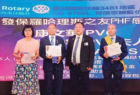 扶輪基金委員會:PP Barley冠名捐款中華 扶輪教育基金一位碩士15萬,PP Textile捐款 教育基金一萬元;社長Highball、PP Sport、 PP Sake II和扶輪基金主委Truck捐獻4顆保 羅哈里斯;本次也成功申請地區獎助金贊助善水 中小學服務計畫。 總 監 公 訪