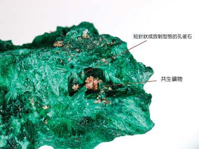 本所的標準樣品中有細針 放射狀的孔雀石原礦,作為對照 組觀察。