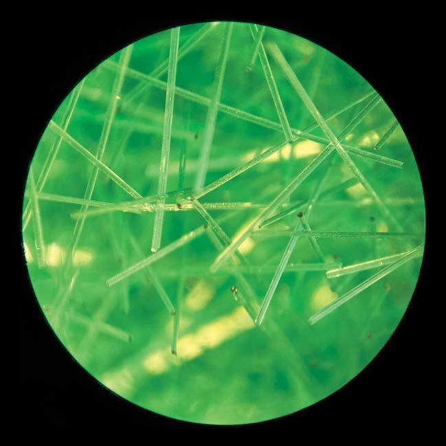 ●紫外燈觀察綠色針狀物