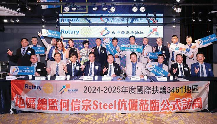 員招募業務。地區社員主委Gordon有來,他 所屬的台中大屯社友有100多位社友,相關的 經驗豐富,可以藉此跟主委請益,將曙光壯大 了。自然能吸引更多的人,來規劃更大的服務, 期許規劃扶輪的優先事項:增加我們的影響力、 擴展我們的觸及、促使參與者的投入、增強我們 的適應能力。緊接著各主委依序上台宣傳活動, 最後DG Steel勉勵曙光在年度裡呼應「神奇扶 輪」。就在歡樂的餐敘時光中,圓滿完成今日總 監公訪。