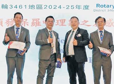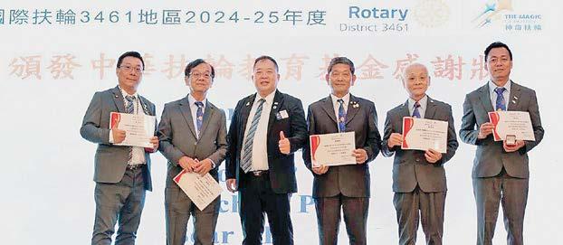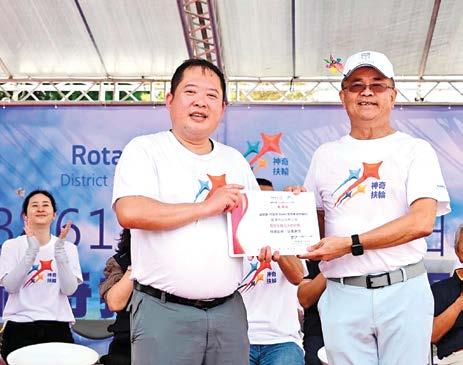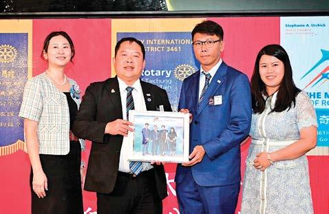 區獎助金,配合中國醫藥大學口腔衛生系偏鄉 服務,為滿州兒童舉辦口腔育樂營暨牙科義診, 協助衛教家訪。響應地區扶輪之子計畫,本年 度共有12位社友認養扶輪之子,平均每3位社 友就有一位贊助。更承辦了3461地區首次舉辦 的RYE短期國際營隊開幕式,社長帶領社友一 起共襄盛舉,自己更是出錢又出力,讓「2024