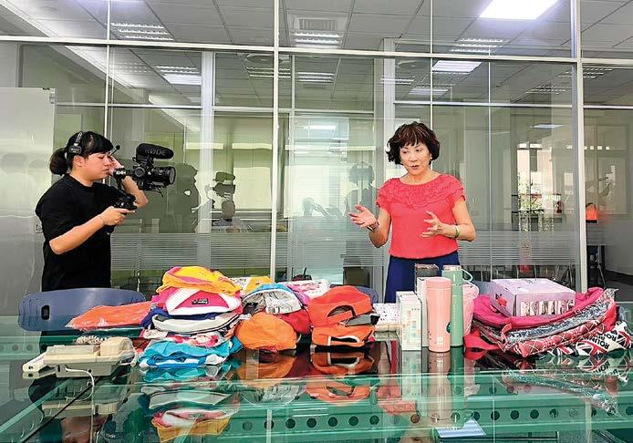 以上種種條件,也堆積不少 紀念品才對!藉此,扶輪公益網 邀請IPDG Tony伉儷攜手來捐 物資做環保。團隊初到時,夫 人已將物資擺設整齊,並一一