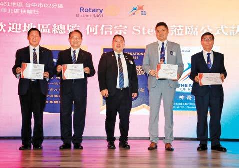 高美扶輪社於今年5 月18 日才授證正式成 立,觀其行事曆,節目都還停留在自我介紹階 段,無論是社員之間的友誼、社務的運行、扶輪 服務的投入等都還處於磨合期,在第9 次例會 就遇上總監公訪,程序進行雖不及其它老社順 暢,但是他們的盡心盡力值得讚許。