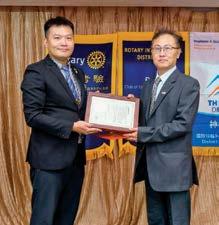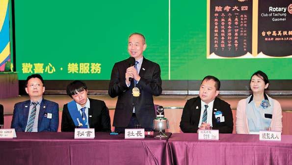 默風趣的方式親自向全體社友闡述扶輪精神,並 對山海屯扶輪社在社會服務中的傑出表現表示讚 賞和鼓勵。總監的致辭中強調了扶輪社不僅是服 務他人,也是通過集體合作達成共同目標的社會 力量,讓全體與會社友深刻認識到扶輪所擁有的 全球視野與使命感,也讓對扶輪的未來充滿了信 心。接著由總監團隊進行了本年度接下來的活動 預告,並宣布了2025年3月15日舉行的地區 年會,這場年會將是地區內扶輪社集結一堂的重 要活動,期待能夠吸引更多的扶輪社友參與,並 共同探討扶輪社未來的發展和計畫。