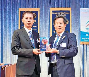 羅哈里斯捐獻、認養4名扶輪之子及捐 獻中華扶輪教育基金會NT 10,000,非 常感謝;有了一個好的開始,今後的年 度中,社友、五大主委,要有新的傳承, 一棒接一棒壯大貴社。期望社長及其團 隊,對內經營好爐邊會、聯誼活動,促 進出席率,以增進社友向心力和黏著力, 並把扶輪知識帶給社友,在每次例會前 作短暫的宣導,也能潛移默化。對於服 務計畫,總監更勉勵身為扶輪人,優質