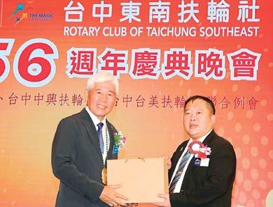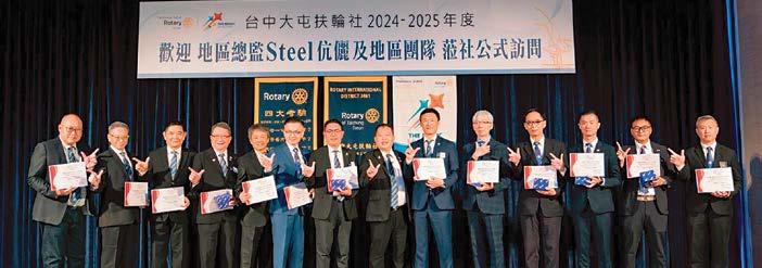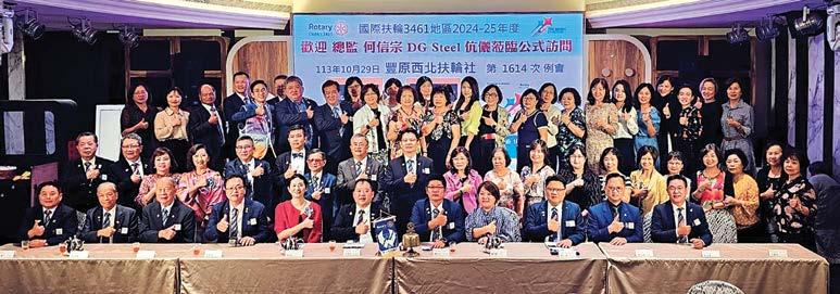 「一見總監大家歡唱~希望總 監有同感~請將扶輪精義闡明~若有 指示亦請講~」,地區總監的角色對 於扶輪社而言是一個不可或缺的領導 存在。總監Steel作為來自豐原東區 社的地區總監,在今年度總監公訪的 壓軸與最終站「返鄉」,讓豐原東區 扶輪社的總監公訪活動充滿了儀式感 及特殊的意義。豐原東區扶輪社自 1998年成立以來,一直以其強大的 凝聚力與向心力著稱,每一位社友都 以扶輪精神為原則,不遺餘力的投入 各項社會服務活動。
