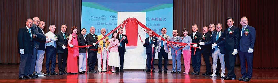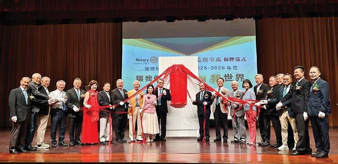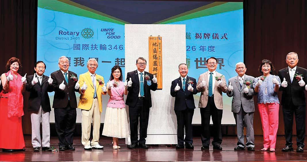 接著Sunny總監賢伉儷邀 請19位貴賓共同擔任揭牌官, 見證歷史一刻!當倒數完,揭下 紅布,令人為之振奮!台上的 笑容,台下的掌聲,跨屆總監 們,同心協力,團結傳承,這是 3461盛運的底氣!當然3461 最美的是社友們!整個揭牌儀式 在全體大合照後圓滿完成,恭喜 Sunny總監團隊風光上任,讓 我們團結行善,與Sunny總監 一起FUN轉世界!