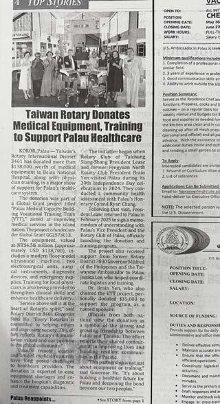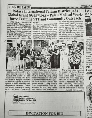 國家帛琉圓滿完成。由國際扶 輪台灣3461地區主導、豐原北 區扶輪社、台中向上扶輪社等