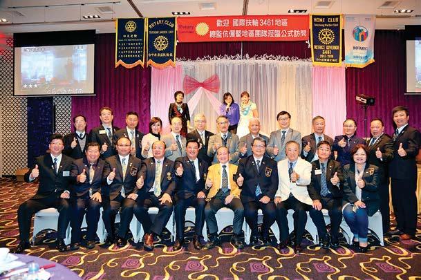 Sunny總監與秘書長 William團隊的高人氣可見一 斑,也展現今年3461地區 Unite For Good的行動宣言! 10:30典禮準時開始, 司儀主持流暢明快,首先介紹 3461地區Sunny總監賢伉儷、 地區副總監PDG Bill、以及地 區諮詢主委PDG Five、總監特 別顧問PDG Music,兩位也為 今日典禮致詞增添光彩。並一一 介紹歷屆總監與貴賓。