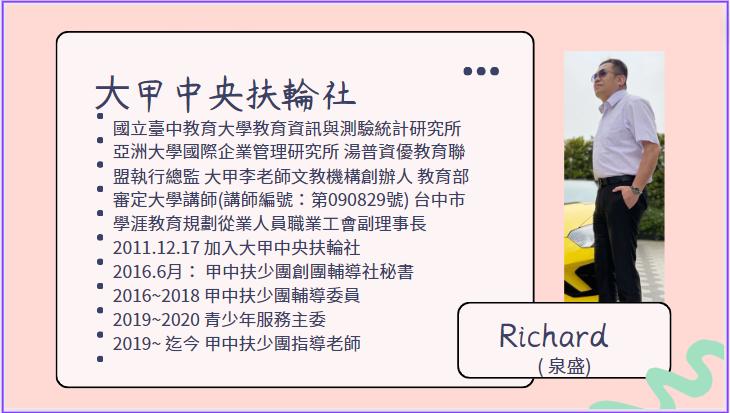 • A區副主委 黃學通 Aqua 台中中區扶輪社