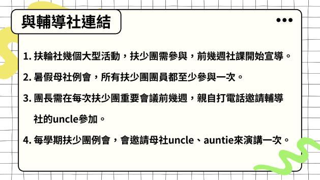 開扶少團訓練會議,最主要目的是要讓許多新團員們了解