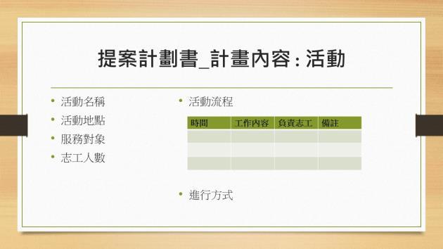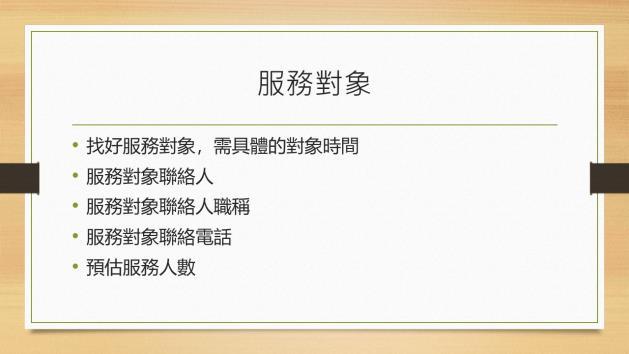 會議,企劃活動,關心社區提供服務機會…等等,希望今天在