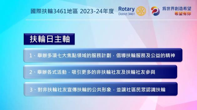 ▪ 主辦單位:國際扶輪3461地區扶輪日委員會及地區扶少團委員會。