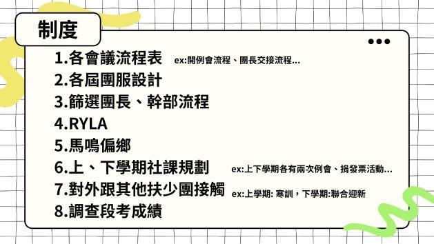 在這裡分享一些關於服務和共同努力的想法。扶輪少年服 務團的核心價值之一是友誼。這個組織不僅為我們提供了機會 來幫助他人,還建立了深厚的友誼。通過共同參與各種項目和 活動,我們建立了持久的聯繫,這些聯繫將伴隨著我們一生。