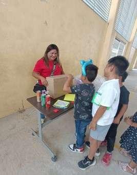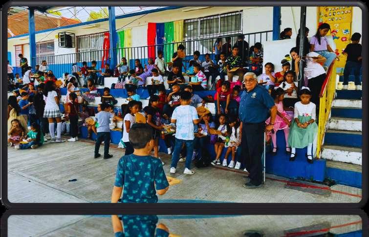 Presentes en la Escuela Primaria Federal Club Rotario Entregando dulces a más de 300 niños.