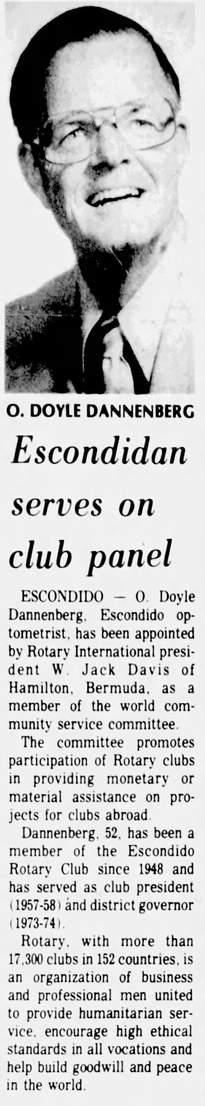 In 1974, Jack became President of the Rotary Club of Escondido, leading the club through significant community involvement as Rotary helped Escondido celebrate the country's bicentennial. His connection to Rotary is even more personal, as he shares an October 20 birthday with the club's charter day, symbolizing his long-standing bond with the organizationhealsoservedasthe100thpresident.