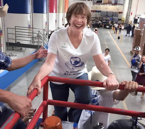 Before joining Dr. Bronner's, Trudy lived in Glendale, CA, where she and her late husband, Jim Bronner, raised their family. Trudy was deeply involved in her community, serving two terms as PTA President, leading a Cub Scout den, supporting her children's sports teams, and contributing to the Glendale Philharmonic Committee, which supported the Los Angeles PhilharmonicOrchestra.
