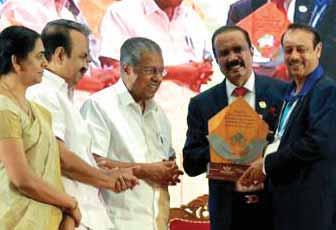 Kerala Chief Minister Pinarayi Vijayan felicitated PDG A V Pathy, RID 3201, for Rotary’s contribution in building houses for people who lost their homes in the 2018 floods that ravaged major parts of Kerala.