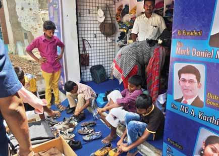 Grocery kits worth `300 each were distributed to 40 physically-challenged persons. Notebooks, school bags and slates were given to students at Yerraguntapalli Elementary School, Rotary Elementary School and ZPH School, Narasapuram.