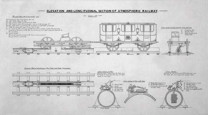 Primero lo intentó con los ferrocarriles atmosféricos, uno de los tantos cachivaches inútiles que produjo la Revolución Industrial, pero que entonces parecía prometedor. Era un tren ligero, silencioso y que no podía descarrilar, pues circulaba pegado a una tubería. Desde uno de los extremos se bombeaba aire, que, por la diferencia de presión, succionaba el convoy hacia el otro extremo, de ahí el “atmosférico”.