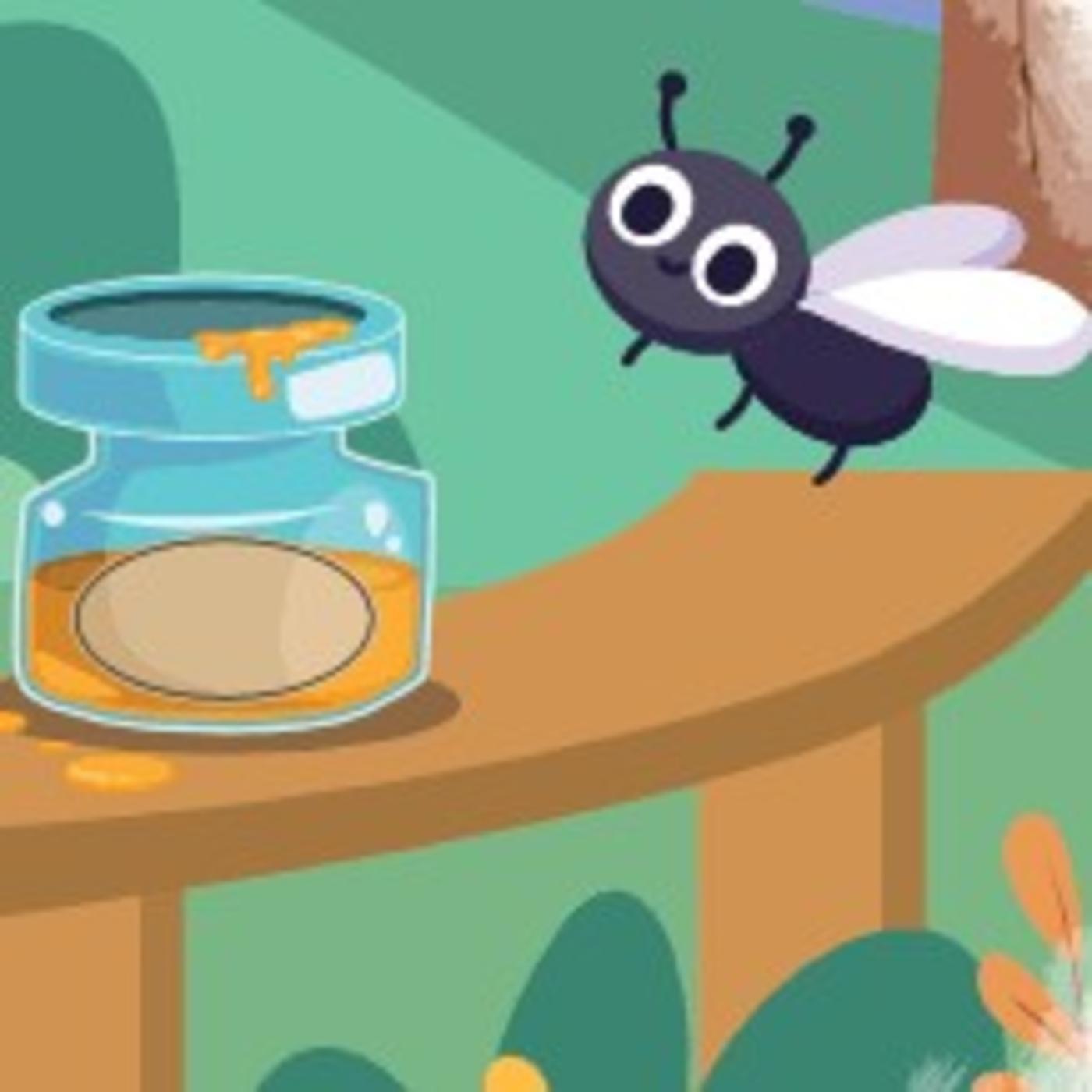 Una noche cualquiera, una mosca se posó sobre un frasco rebosante de miel y comenzó a comerla alrededor del borde. Poco a poco, se alejó del borde y entró desprevenida en el frasco, hasta quedar atrapada en el fondo. Sus patas y alas se habían pegado con la miel y no podía moverse.