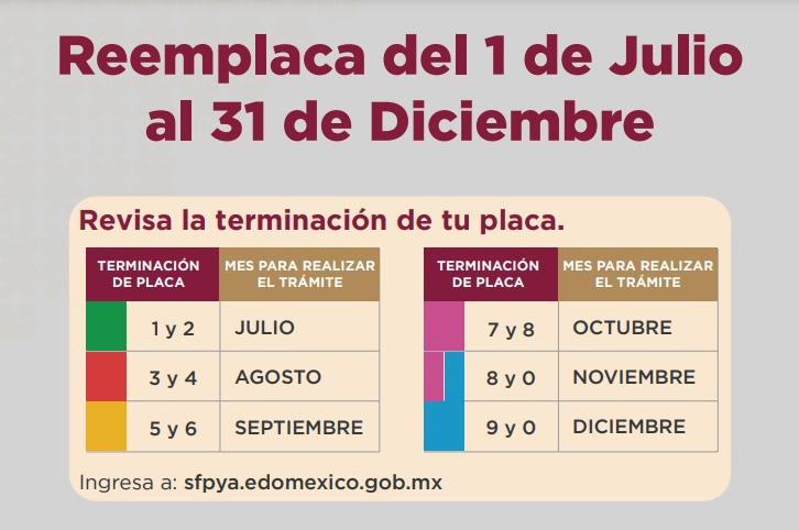 Fechas en las que podrás realizar el reemplacamiento en el Estado de México en 2024. (Imagen: Gobierno del Estado de México).