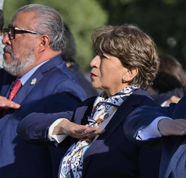 Delfina Gómez ceremonia de izamiento de bandera en la capital mexiquense