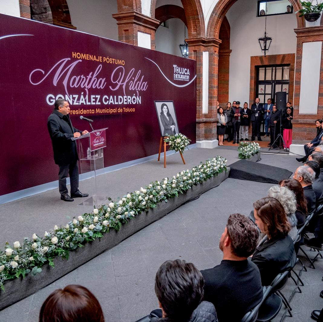 El Presidente Municipal de Toluca, Ricardo Moreno Bastida, encabezó la ceremonia en la que destacó la trayectoria de González Calderón como presidenta municipal, legisladora y secretaria de Estado, recordándola como una mujer de convicciones firmes, con un profundo sentido de responsabilidad y compromiso social. “Martha Hilda entendió la política como un acto de servicio y transformación.