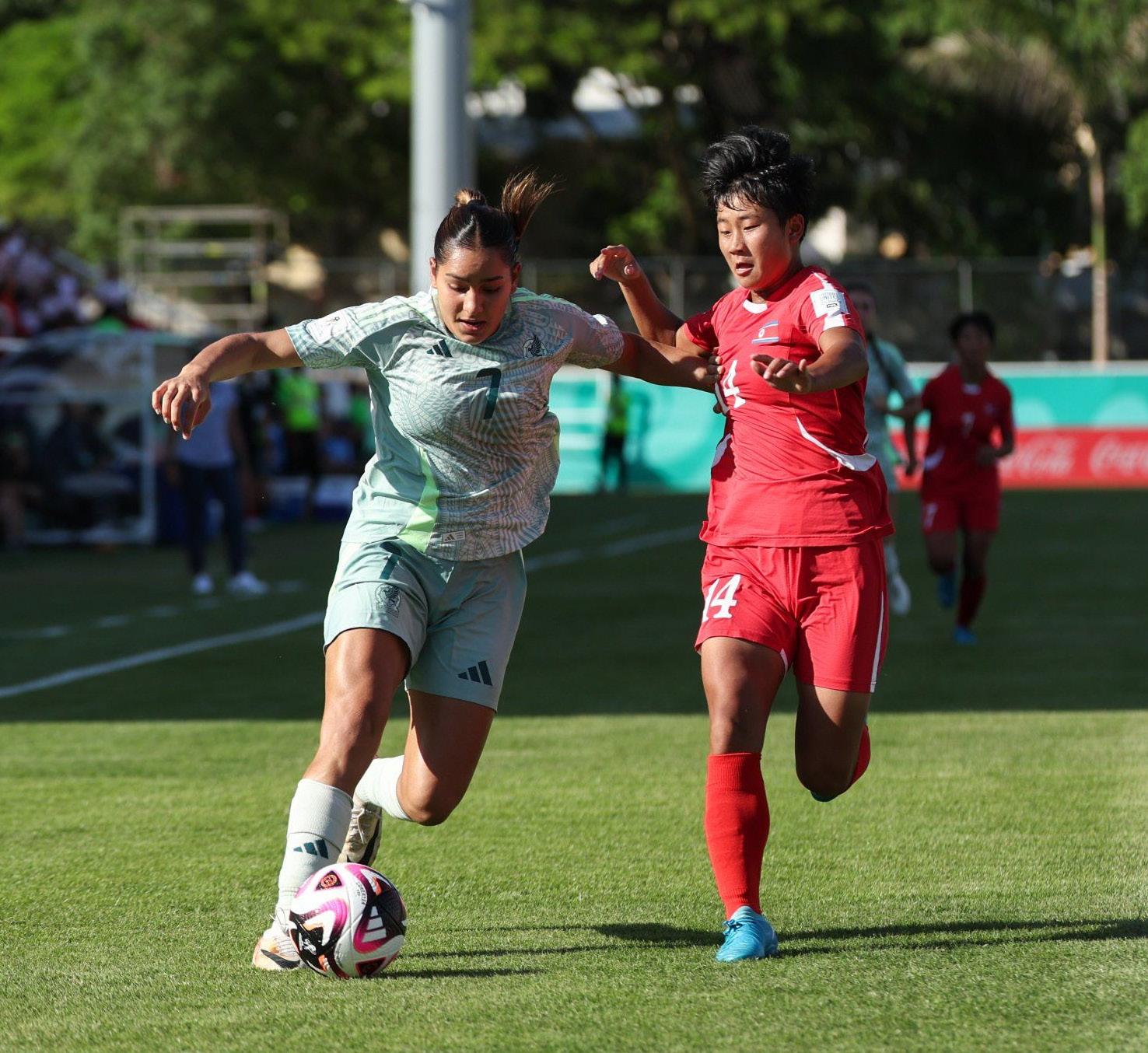 arquera Camila Vázquez. Doce minutos después, El Son Choe aumentó la ventaja con un potente remate a bote pronto. Para el minuto 34, Rim Jong Choe anotó su segundo tanto, dejando al cuadro mexicano al borde del colapso. Sin embargo, México logró descontar justo antes del descanso gracias a Citlalli Reyes, quien concretó una jugada colectiva al minuto 45. Este gol mantiene vivas las esperanzas de avanzar, siempre y cuando se obtengan resultados positivos en los próximos encuentros. Durante el segundo tiem-
