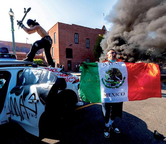 Desde Palacio Nacional, la presidenta Claudia Sheinbaum fue clara: México no tolerará medidas que vulneren a sus connacionales Aunque condenó los actos vio-lentos registrados en las protestas, también hizo un llamado a Washington: la migra-cióndebetratarsecondignidadyrespeto.