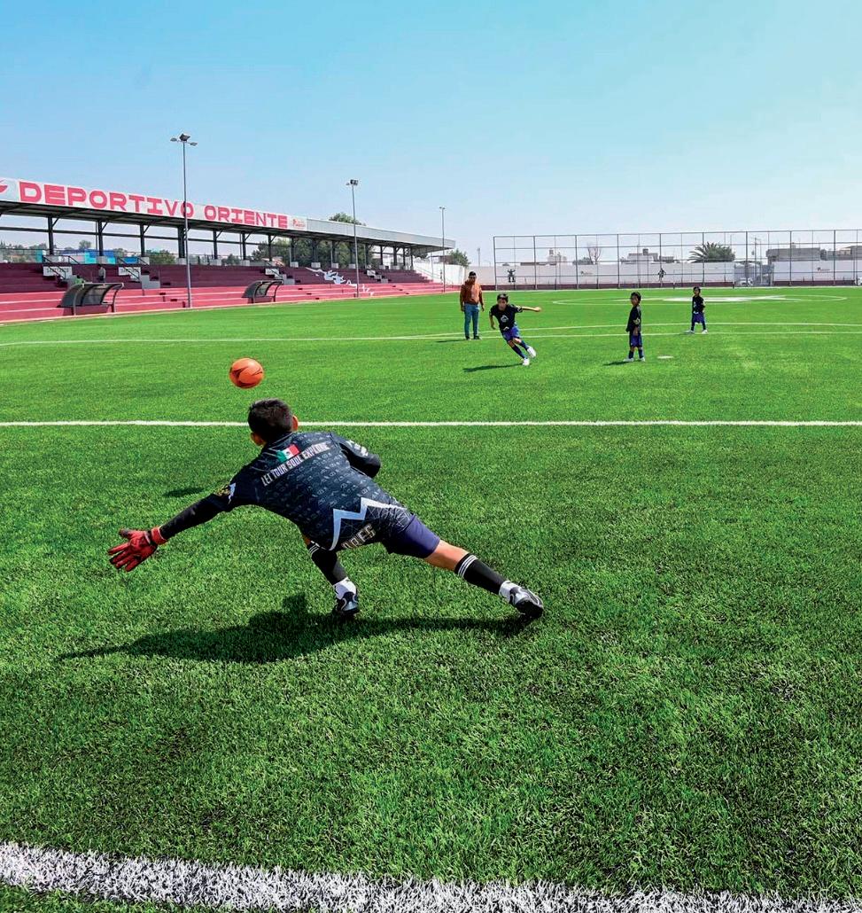 ElEstado de México avanza en el fortalecimiento de la infraestructura pública con un enfoque sostenible, al incorporar criterios ecológicos en el Programa de Obra Pública. La Secretaría de Desarrollo Urbano e Infraestructura (Sedui) reportó la colocación de más de 169 mil 500 metros cuadrados de pasto sintético en 43 unidades deportivas, así como la construcción de 48 pozos de absorción pluvial, con el objetivo de reducir el impacto ambiental y optimizar el uso de recursos naturales. Esta superficie de césped artificial equivale a más de 23 campos de fútbol del estadio Nemesio Diez en Toluca. Su implementación elimina la necesidad de riego frecuente, evita el uso de fertilizantes y pesticidas, y garantiza áreas deportivas funcionales