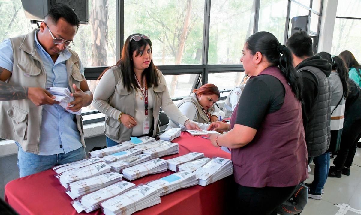 La Gobernadora Delfina Gómez Álvarez encabezó la entrega de tarjetas del Banco del Bienestar en Naucalpan y Tlalnepantla, garantizando un apoyo mensual de 8 mil pesos y seguro médico para los participantes. pág.3