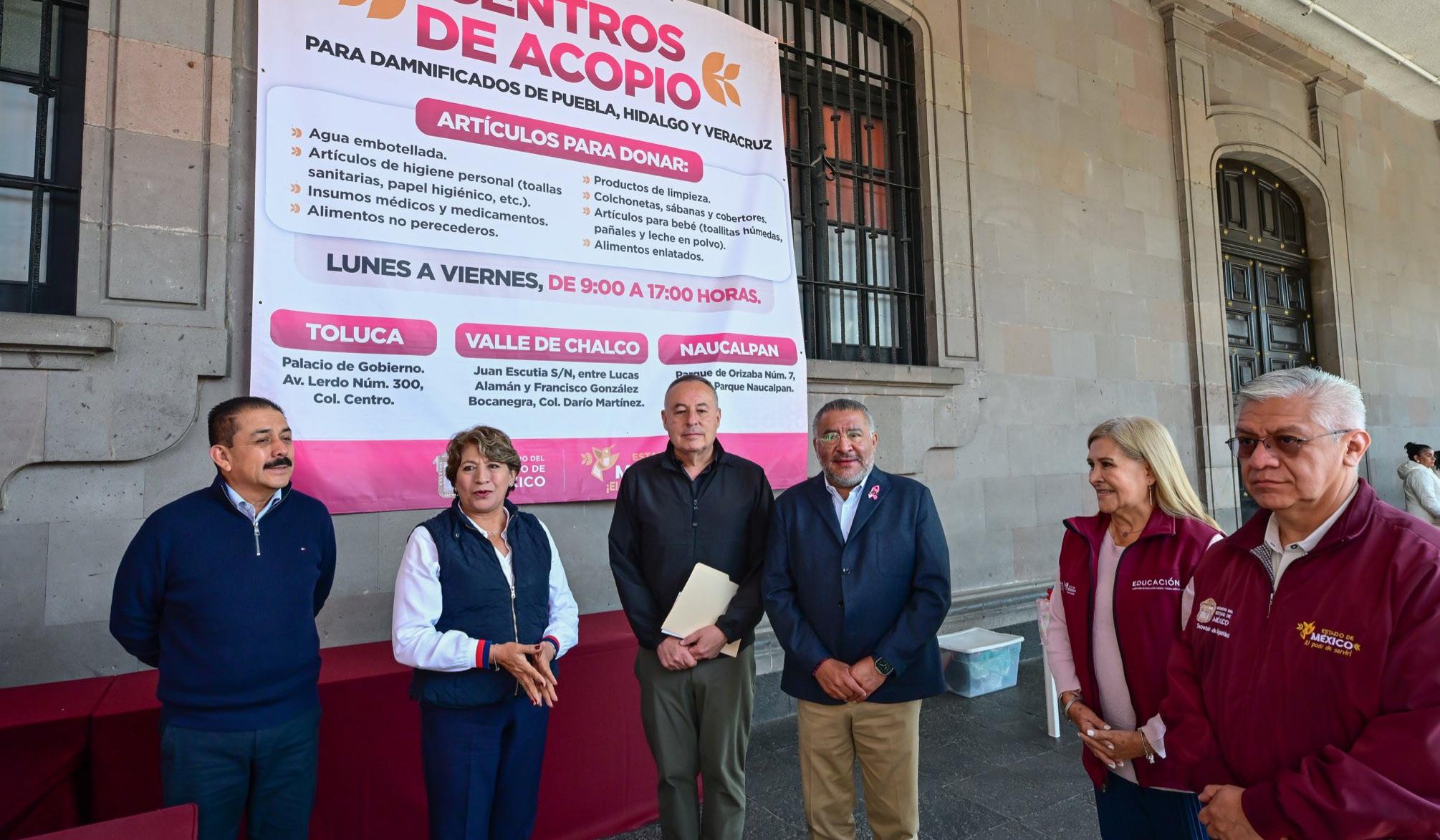 Las sedes habilitadas para el acopio de donaciones son las siguientes: Palacio de Gobierno en Lerdo 300, colonia Centro de Toluca; las instalaciones del DIFEM en Paseos Colón y Tollocan; el Parque de Orizaba número 7 en Naucalpan; y el centro ubicado en Juan Escutia sin número, en Valle de