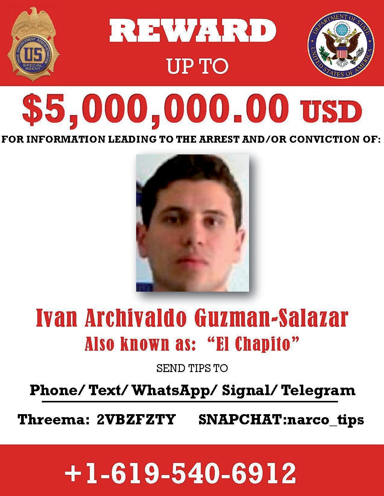 Las autoridades estadounidenses intensificaron sus acciones contra el narcotráfico al anunciar una recompensa de 10 millones de dólares por información que conduzca a la captura de Iván Archivaldo Guzmán Salazar, uno de