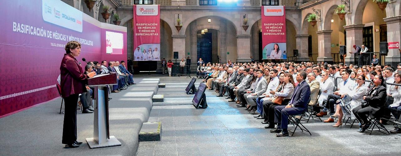 La Gobernadora Delfina Gómez Álvarez entregó 72 nuevas basificaciones a médicas y médicos especialistas del Instituto de Seguridad Social del Estado de México y Municipios (ISSEMyM) como parte de su estrategia de rescate y fortalecimiento de esta institución. pág.4