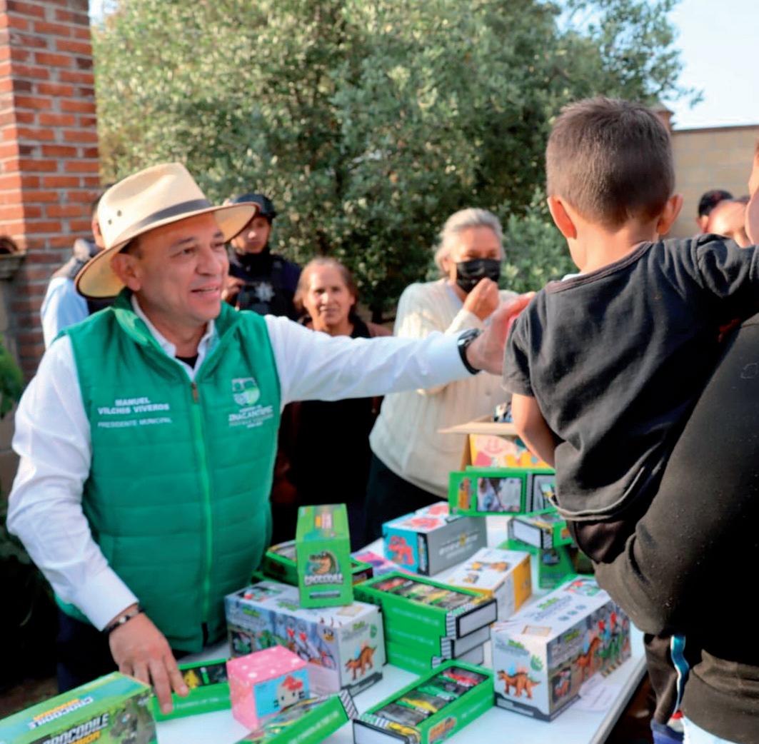 El alcalde Manuel Vilchis entregó personalmente juguetes y dulces, rei-