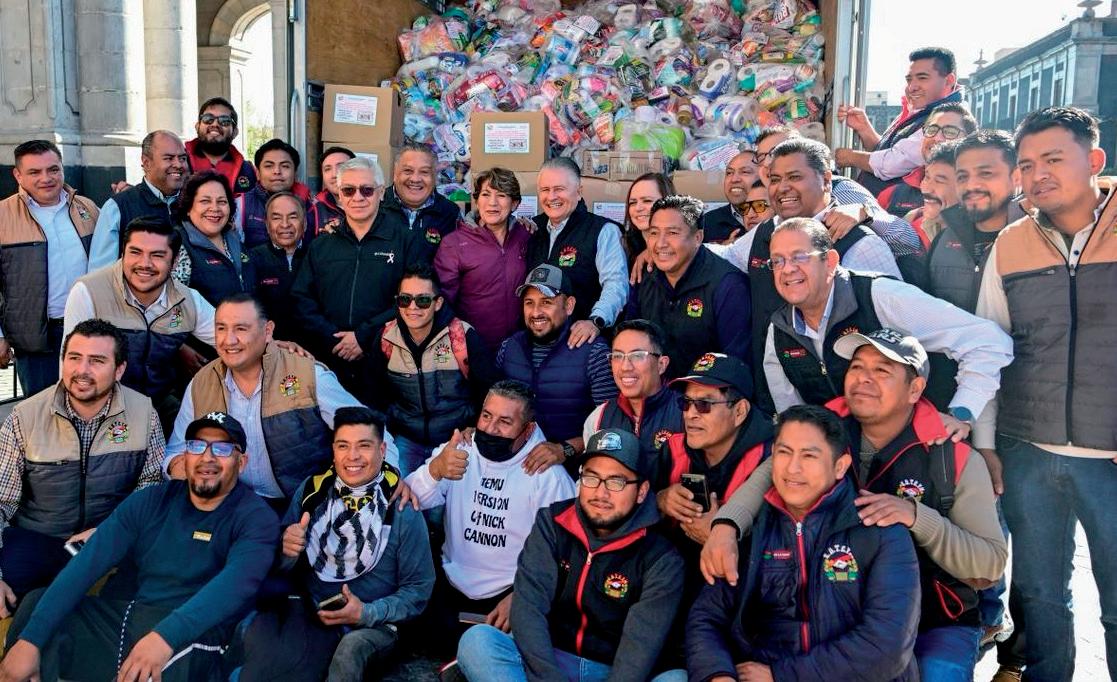 Álvarez encabezó la recepción de 14 toneladas de ayuda humanitaria enviadas por el Sindicato Único de Trabajadores de los Poderes, Municipios e Instituciones Descentralizadas del Estado de México (SUTEYM), reafirmando la unión y solidaridad entre el Gobierno estatal y los trabajadores mexiquenses.