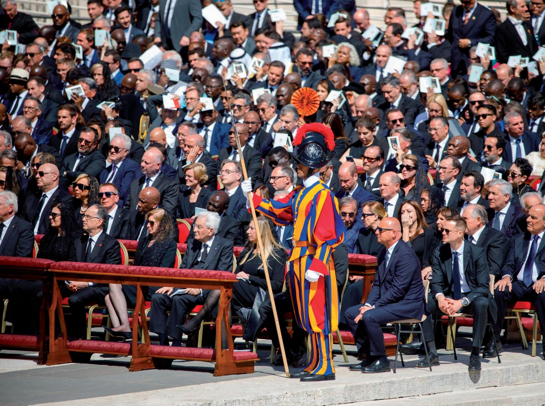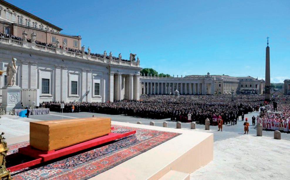 Unas 250 mil personas asistieron al funeral, mientras decenas de miles más acompañaron el cortejo fúnebre en Roma, aplaudiendo y vitoreando “papa Francesco” al paso del ataúd de madera que fue trasladado en un antiguo papamóvil hasta la Basílica de Santa María la Mayor. Posteriormente, fue escoltado al interior por la Guardia Suiza. pág.10