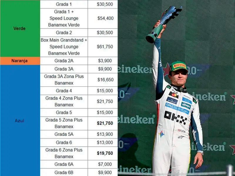 experiencia más exclusiva será el Box Main Grandstand, que incluye acceso al Speed Lounge Banamex Verde, con un precio máximo de 61 mil 750 pesos, sin incluir cargos por servicio. Como novedad, la organización del México GP implementará el Derecho de Primera Opción (DPO), un servicio que permitirá a los compradores de 2026 asegurar sus asientos para las ediciones de 2027 y 2028. Este beneficio no constituye un boleto, sino una opción de compra anticipada, cuyos precios oscilan entre mil 450 y 7 mil 500 pesos, dependiendo del área seleccionada.