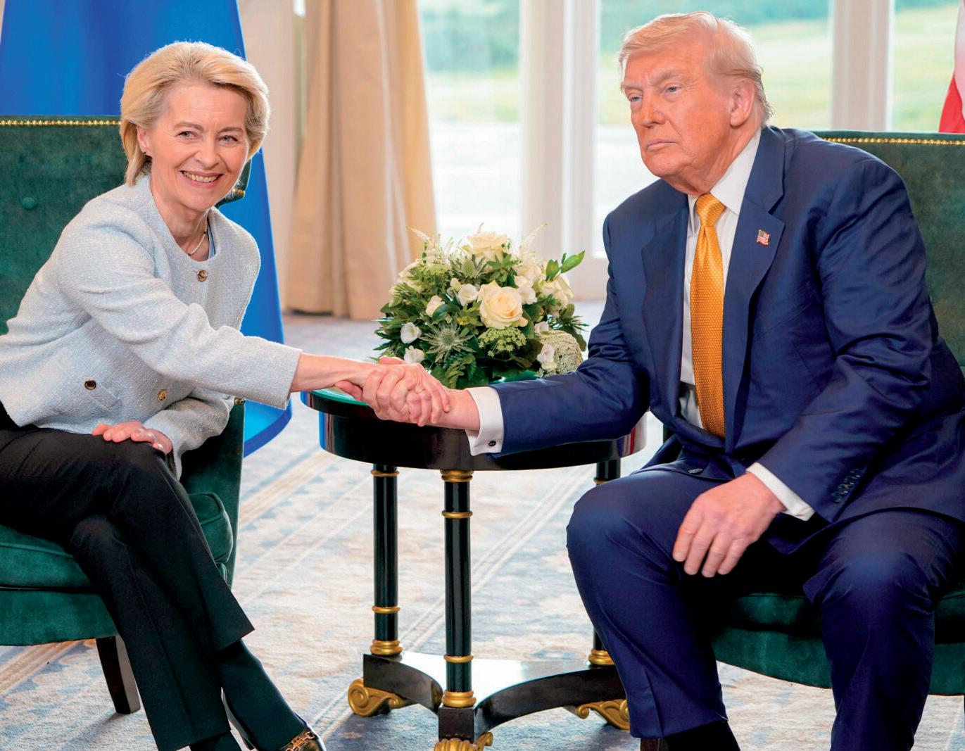 La presidenta de la Comisión Europea, Ursula von der Leyen, confirmó que el acuerdo incluye aranceles del 15% aplicables a todos los sectores, lo que busca equilibrar la balanza comercial entre ambos socios globales. El anuncio se realizó tras una reunión bilateral celebrada en Escocia entre Von der Leyen y el presidente estadounidense Donald Trump, quien ha impulsado activamente nuevas condiciones comerciales con varios países como parte de su estrategia económica.