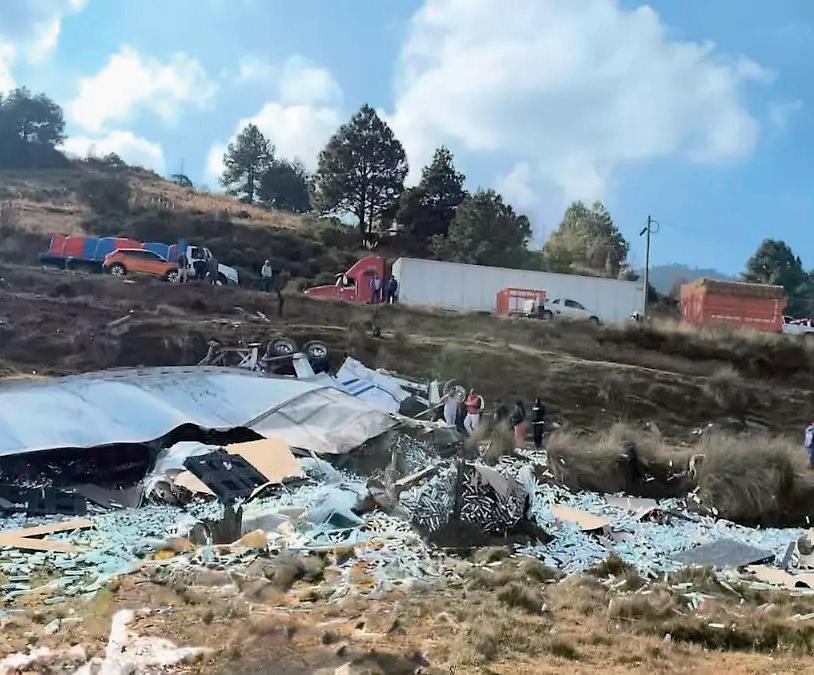 Caja de trailer totalmente destruida en la carretera Naucalpan–Toluca