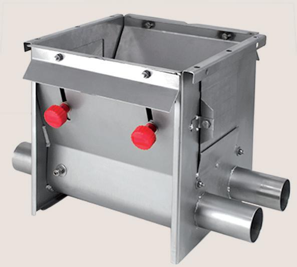 Conjunto de salida a silo equipado con cono, cajetín metálico y rasera de doble posición que permite montajes en horizontal e inclinados.
