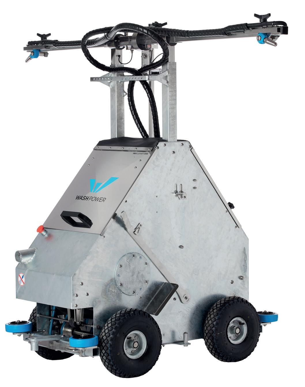 AVIPORC-. ProCleaner X100 tiene 4 ruedas y mide 67,5 cm de ancho y 115 cm de largo. El robot de limpieza se mueve por la nave mediante una rueda ajustable que se desplaza apoyándose por el pasillo siguiendo los paneles divisorios y asegura mantener la dirección correcta. La máquina dispone de sensores de ultrasonidos, lo que garantiza que se pare cuando encuentra una pared. El robot se conecta a través del sistema existente con mangueras de alta presión de la granja. Las boquillas, diseñadas especialmente, garantizan la unión de las moléculas de agua, de modo que el chorro de agua mantiene su potente efecto a 5-6 metros.