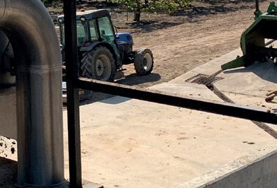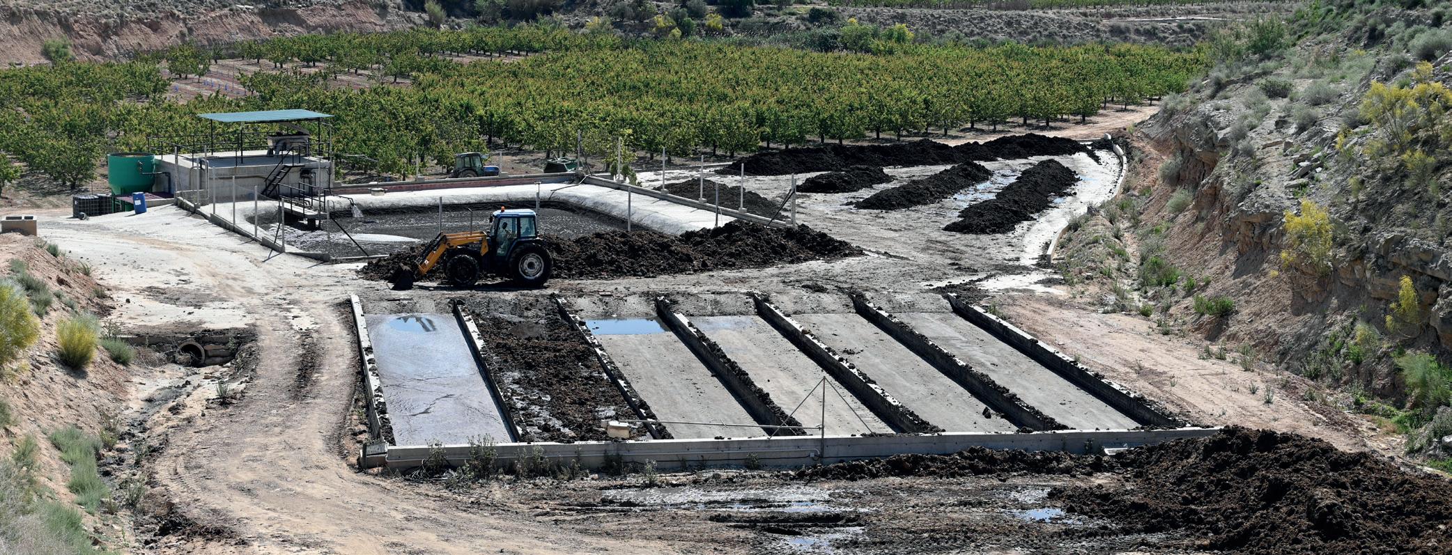 Tenemos todas las granjas conectadas al pantano de purín, desde donde bombeamos el purín hacia el separador (fase 1). De ahí sacamos la parte más sólida, y la líquida la enviamos al reactor fisicoquímico (fase 2), donde se realiza una separación de los barros de la parte líquida. Esta última la enviamos a una balsa de recepción para aprovecharla para el riego por goteo de las fincas. En cuanto a la fracción sólida que obtenemos, la aprovechamos como compostaje, repartiéndola por las fincas nuevas que plantamos, ya que nos ayuda con los ácidos húmicos y fúlvicos, a mantener una humedad óptima en el suelo y a no dejar que aumente la salinidad del terreno.