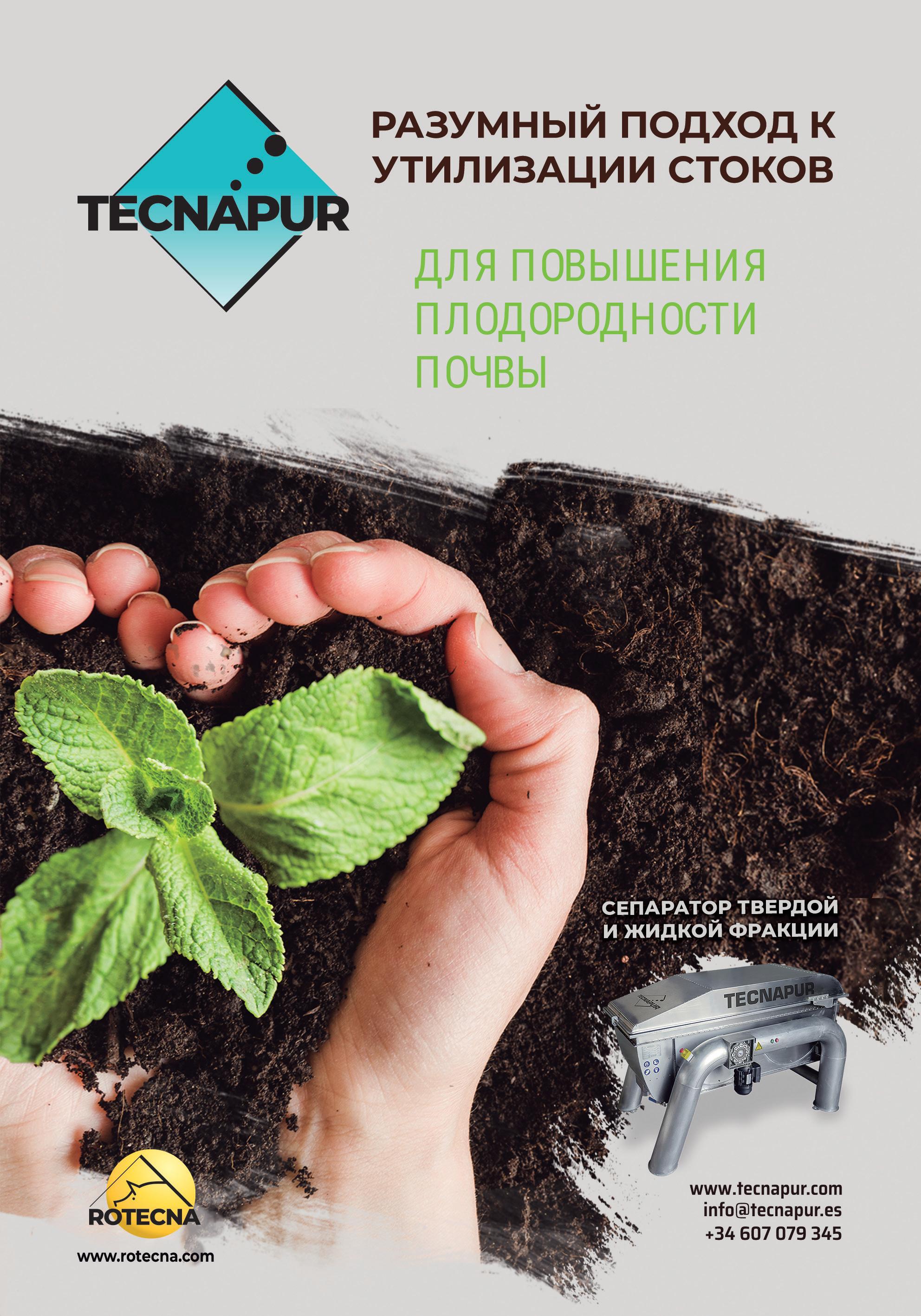 СЕПАРАТОР ДЛЯ ОТДЕЛЕНИЯ ТВЕРДОЙ И ЖИДКОЙ ФРАКЦИИ МЕШАЛКА ЭЛЕКТРОННЫЙ РАСХОДОМЕР ПОГРУЖНОЙ НАСОС VORTEX НАИБОЛЕЕ ШИРОКИЙ АССОРТИМЕНТ ОБОРУДОВАНИЯ ДЛЯ СВИНОВОДСТВА www.tecnapur.com СОСТАВНЫЕ ЧАСТИ СИСТЕМЫ TECNAPUR ПАНЕЛИ УПРАВЛЕНИЯ TECNAPUR- продукт производства компании ROTECNA. Pol. Ind. N-3 · 25310 Agramunt (Lleida) Spain • Tel. (+34) 973 39 12 67 • www.rotecna.com • rotecna@rotecna.com ФИЗИКОХИМИЧЕСКИЙ РЕАКТОР Просканируйте QR код с помощью вашего смартфона.