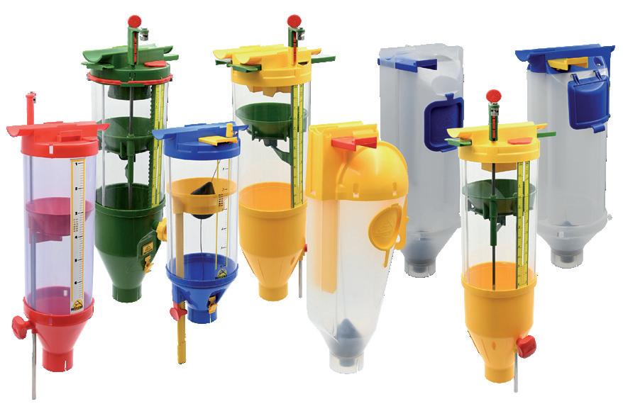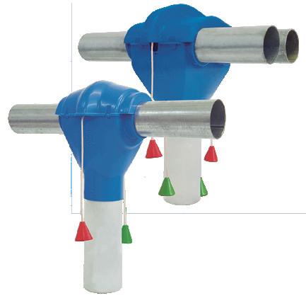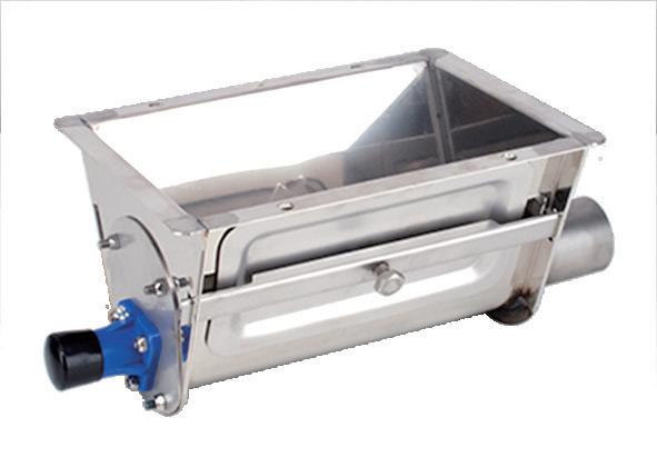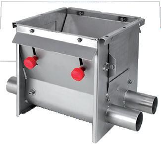shaft incorporates a feed outflow control system and an inspection door with a rubber gasket to ensure no water enters. In addition, for farms where flour is supplied, a cast ball can be inserted into the transfer units to create vibration, which improves the lowering of the flour and makes it harder for the feed to clump together. transfer units can be single (single-line), double (two-line) or triple (three-line), depending on the diameters of the lines.